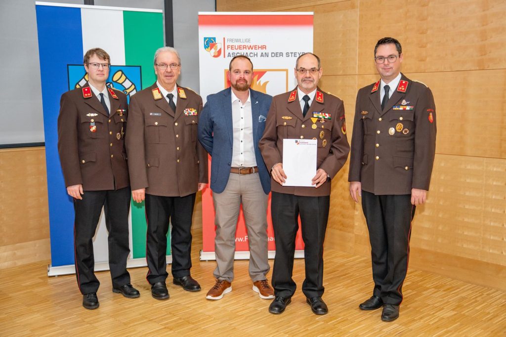 Bürgermeister Ralf Rosenegger zeigte sich beeindruckt vom Engagement und dem starken Zusammenhalt innerhalb der Feuerwehr:„Die Freiwillige Feuerwehr Aschach steht für Verlässlichkeit, Kompetenz und gelebte Kameradschaft. Wir können in Aschach sehr dankbar sein, auf so engagierte Helferinnen und Helfer zählen zu dürfen.“Neben den offiziellen Berichten und Ehrungen war auch der kameradschaftliche Geist deutlich spürbar, der die FF Aschach seit mittlerweile 130 Jahren prägt. Für die ausgezeichnete Bewirtung sorgte der KiWi und trug zu einem rundum gelungenen Abend bei.